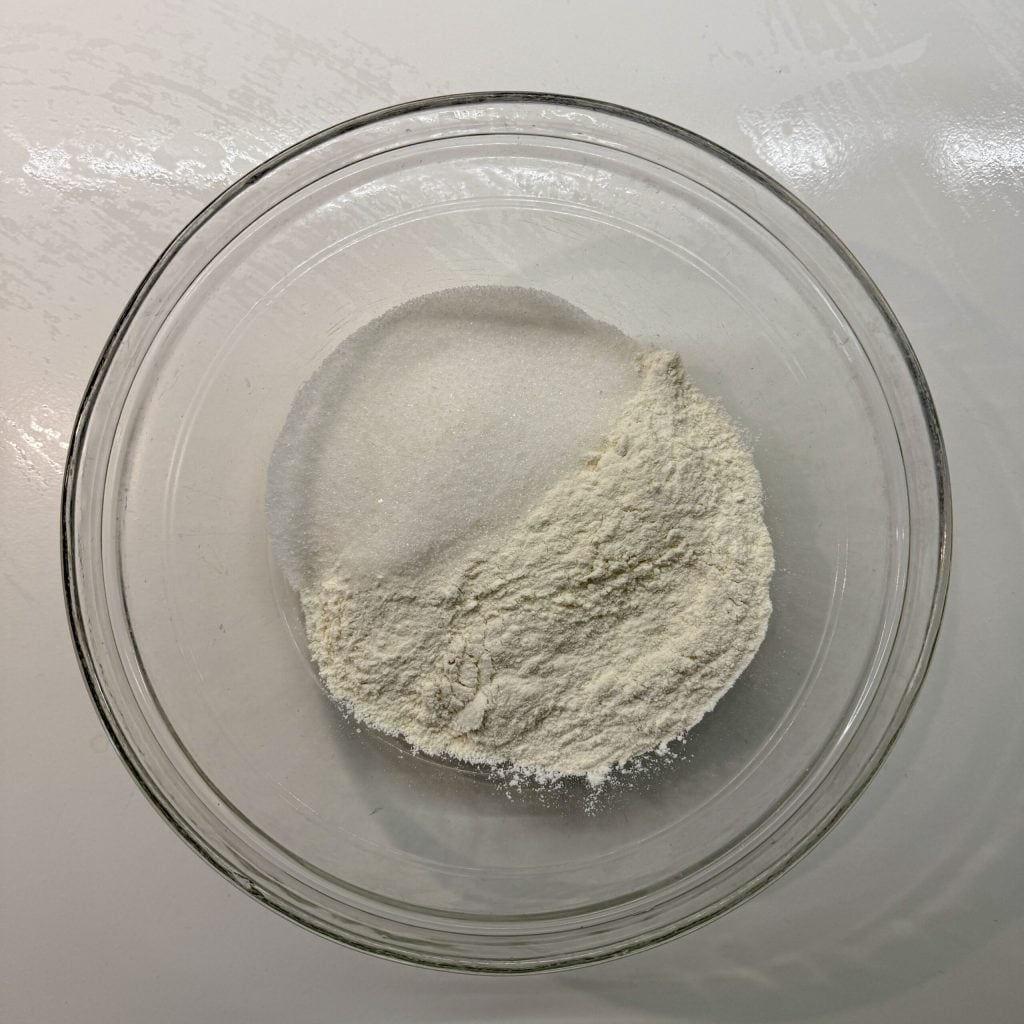 Voeg alle droge ingrediënten toe in volgorde: de bloem, de kaneel en de gemalen kruidnagel.