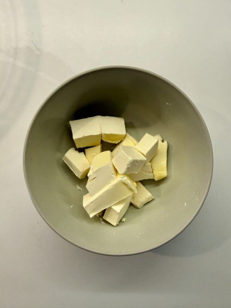 • Snijd de boter of margarine in stukjes in een aparte kom.