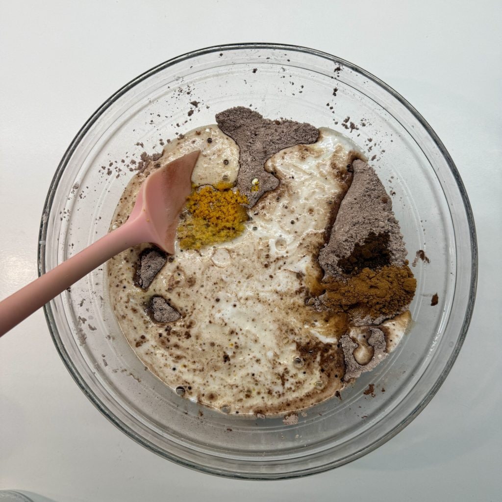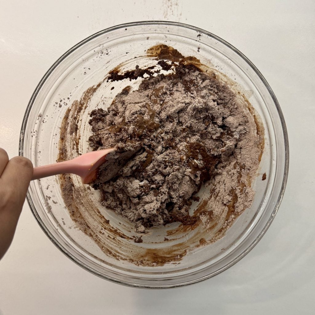 • Voeg ook de gezeefde ongezoete cacao toe.