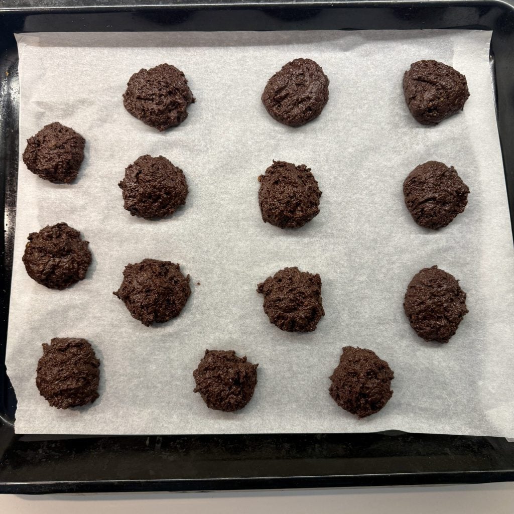 • Bekleed een bakplaat met bakpapier. Maak met behulp van een lepel kleine hoopjes deeg die van elkaar zijn gescheiden.