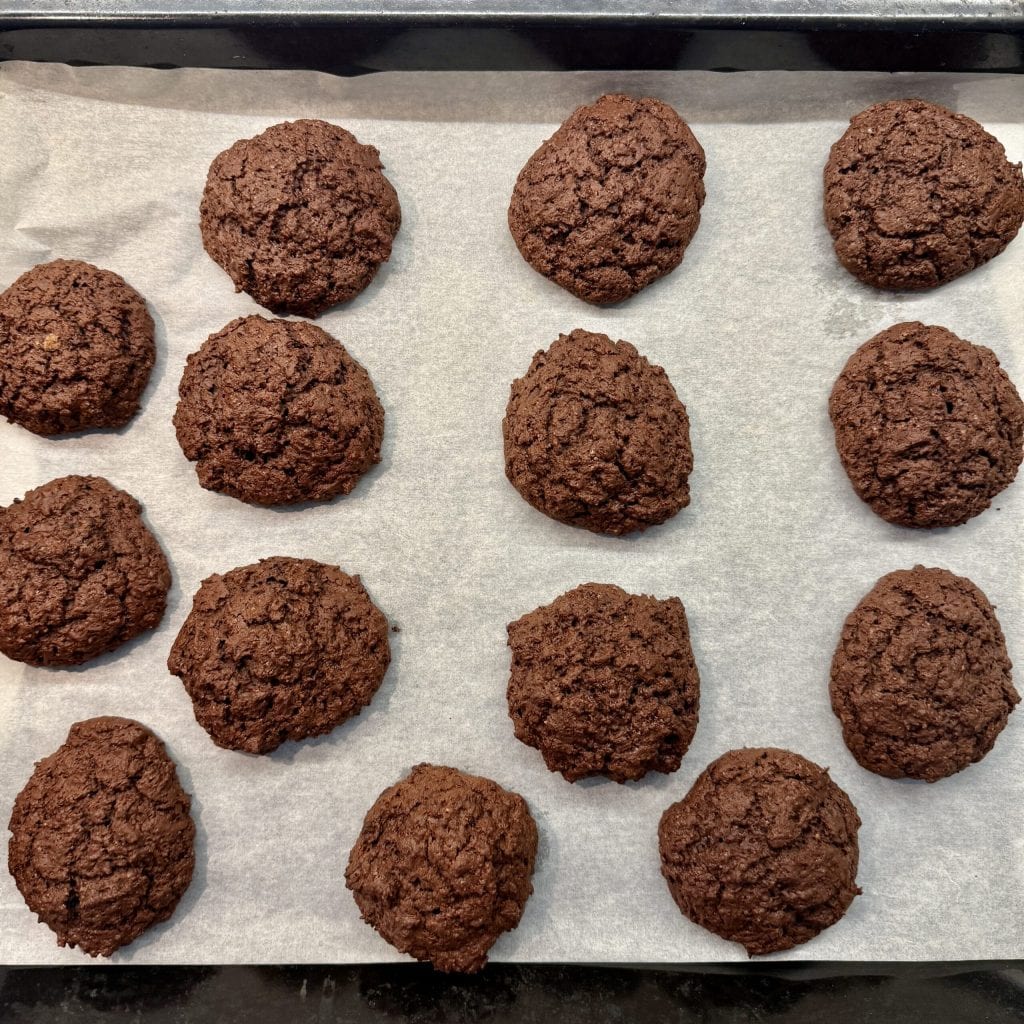 Bekleed een bakplaat met bakpapier. Neem met een lepel het deeg en maak kleine hoopjes die van elkaar zijn gescheiden. Bak in een voorverwarmde statische oven op 180° gedurende 20 minuten. Laat volledig afkoelen.