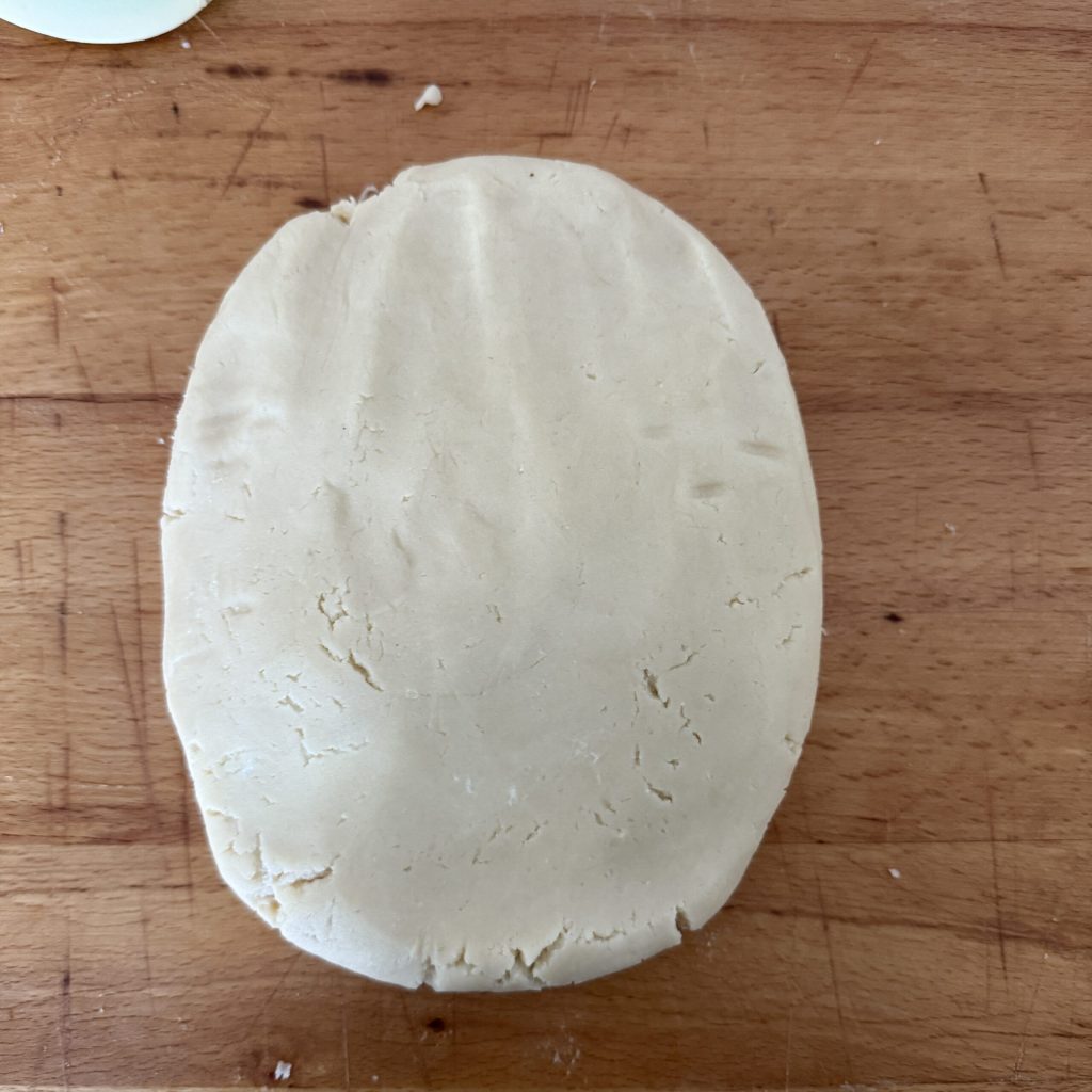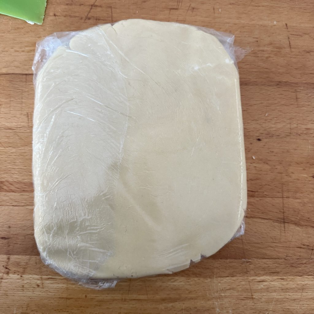 Druk het deeg plat en wikkel het in wat plasticfolie.