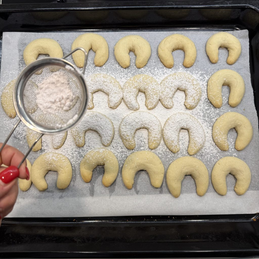 Als ze afgekoeld zijn, bestrooi de Vanillekipferl opnieuw met poedersuiker.