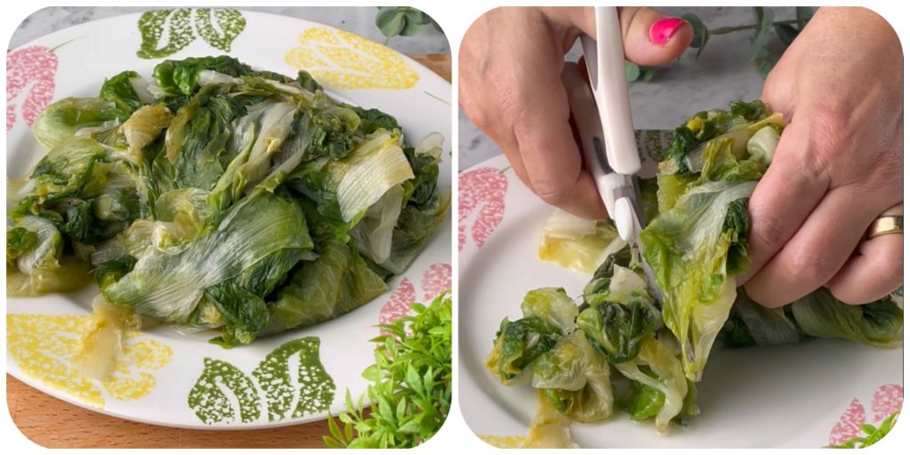Was eerst de andijvie, laat het weken in een bak en na verschillende waterwisselingen, spoel het onder stromend water. Laat het vervolgens uitlekken in een vergiet.
