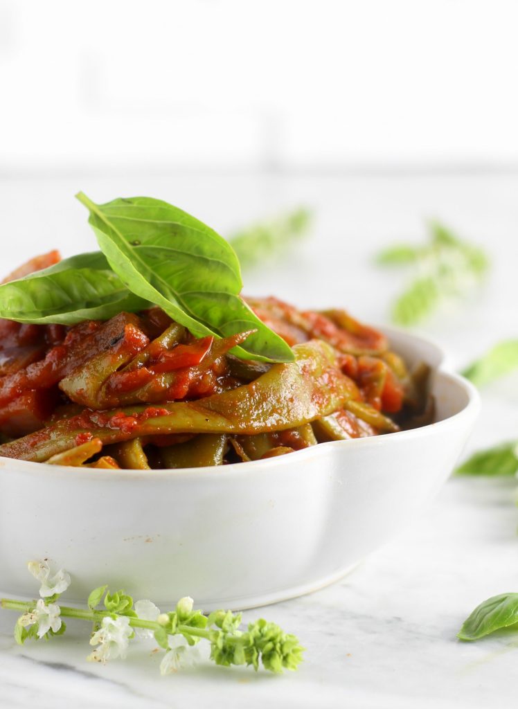 Serveer onze Gebakken Snijbonen in de Pan, direct van het fornuis, maar ze zijn ook erg lekker op kamertemperatuur en koud.