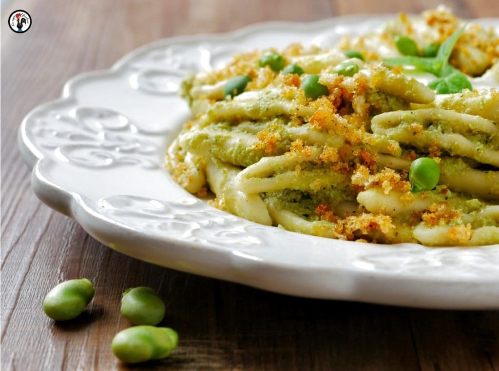 Ter gelegenheid van Moederdag heb ik de strascinati met tuinbonencrème en stracciatella gekookt. De puree van tuinbonen en cichorei is een typisch recept uit Puglia en de naburige regio’s; vaak wordt de overgebleven tuinbonenpuree gebruikt om pasta op smaak te brengen. En het is precies hieruit dat mijn idee ontstond, een regionaal lente recept, met citroen en munt, waarbij ik een handvol jonge en knapperige erwten en een hart van romige stracciatella heb toegevoegd.