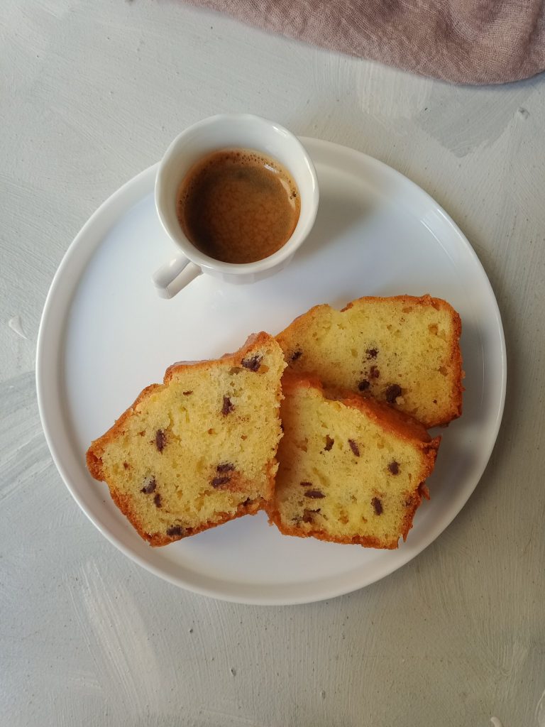 Cirkelformige cake met chocoladestukjes, heerlijk luchtig dankzij de aanwezigheid van mascarpone in het beslag, zal je bij de eerste hap veroveren… Uitstekend voor ontbijt of elk moment van de dag 😋