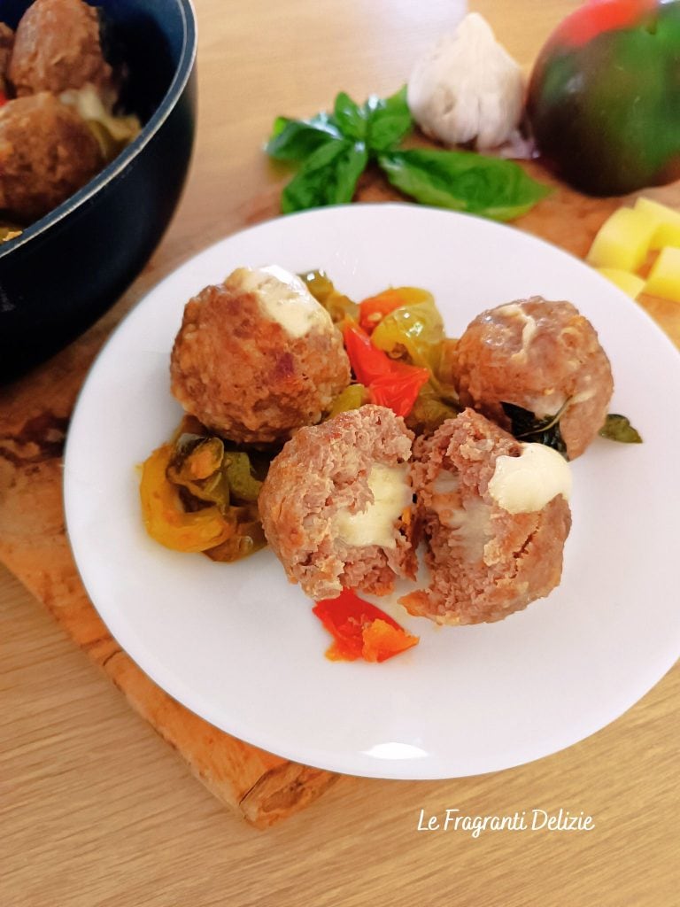 Gevulde gehaktballen en paprika’s en het avondeten is meteen klaar. Bolvormig, groot, klein, gevuld, in saus of gestoofd, de gehaktballen maken iedereen altijd blij. Ze hebben het effect van kersen, de ene trekt de andere aan en ze verdwijnen in een oogwenk. Een gerecht dat iedereen kan maken, en ik heb niet de pretentie om jullie te leren gehaktballen maken. Bedenk dat hun bereiding teruggaat tot het oude Perzië, waar de term “kofta” (gestampte vlees) een gerecht aanduidt dat lijkt op de gehaktballen zoals we die vandaag kennen. Van daaruit verspreidden ze zich eerst naar het Midden-Oosten en vervolgens naar Europa. In Italië verscheen het woord “polpetta” in de 15e eeuw. Na deze korte excursus.