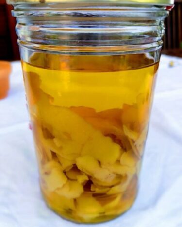 Neem een glazen pot met een luchtdichte sluiting en doe de citroenschillen erin, voeg dan de alcohol toe in de pot, zorg ervoor dat alle schillen ondergedompeld zijn.
