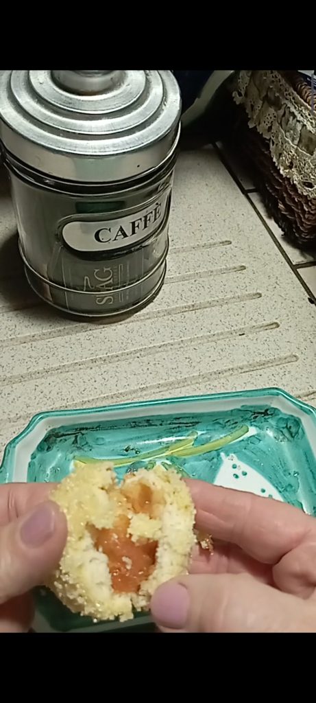 • Hol elke bal in het midden uit en voeg een theelepel jam toe. Sluit en geef de vorm van een citroen.