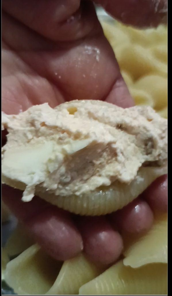 Kook de conchiglioni in ruim gezouten water. Laat ze halverwege de kooktijd uitlekken. Voeg een beetje olie toe om te voorkomen dat ze aan elkaar plakken.