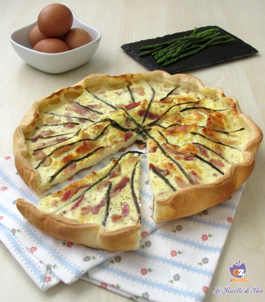 Het recept voor de hartige taart met asperges en gerookt spek vereist echt weinig voorbereidingstijd, dus we beginnen met het voorverwarmen van de oven op 180° in statische modus. Dan koken we wat water met een snufje zout en dompelen de asperges erin voor ongeveer tien minuten.