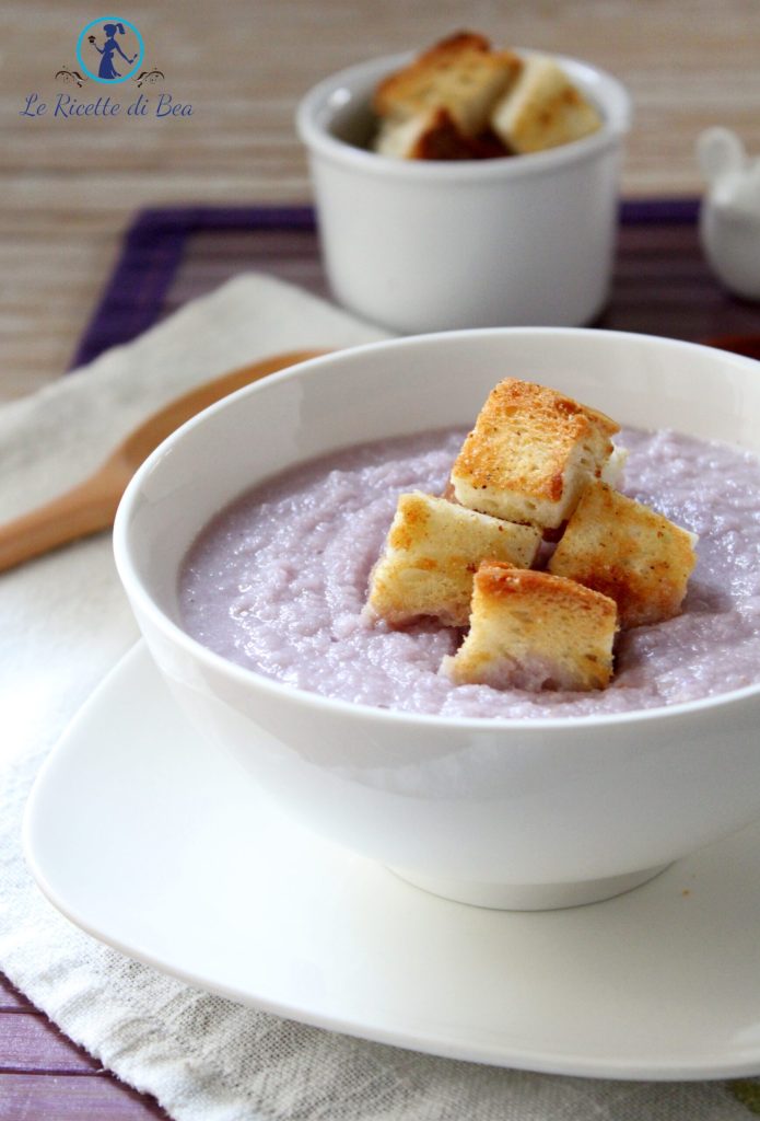 Tips: zoals eerder vermeld, laat de paarse bloemkool op laag vuur koken met de aangegeven hoeveelheid water, bedekt met het deksel gedurende de hele kooktijd. Mix de gekookte bloemkool dan in de blender; je kunt ook een staafmixer gebruiken voor dit recept. Voeg indien nodig een beetje water of meer groentebouillon toe als je een vloeibaardere consistentie wilt. Als je een wow-effect van kleur wilt, voeg dan ook een paar druppels citroensap toe nadat je de romige soep hebt geserveerd: je zult zien dat de plekken die door de citroen zijn geraakt nog meer van kleur veranderen, bijna felroze worden.