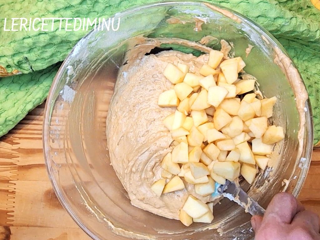 Als je een homogeen mengsel hebt, voeg dan de appelblokjes toe en meng.
