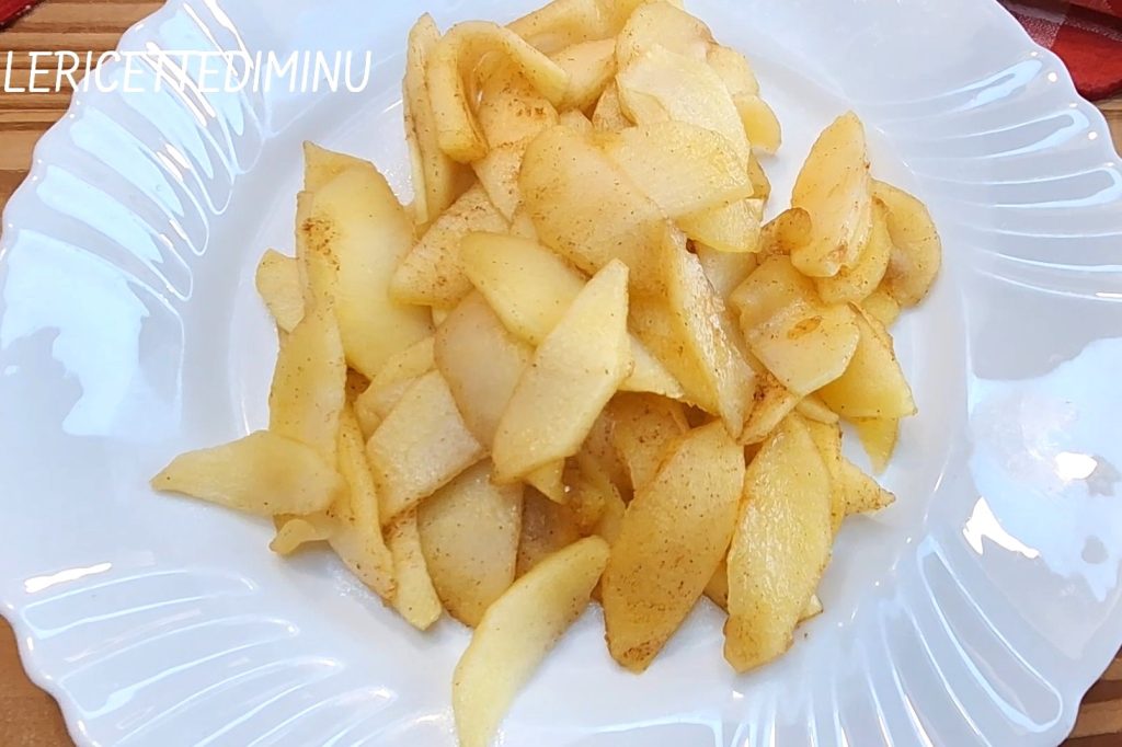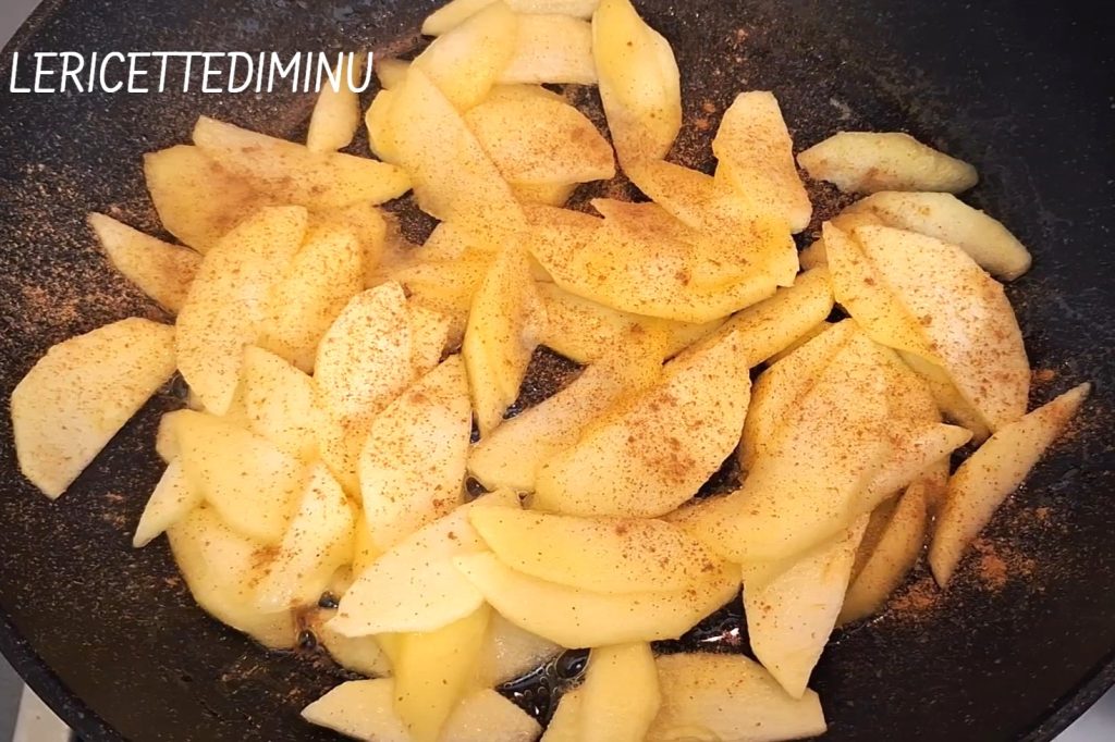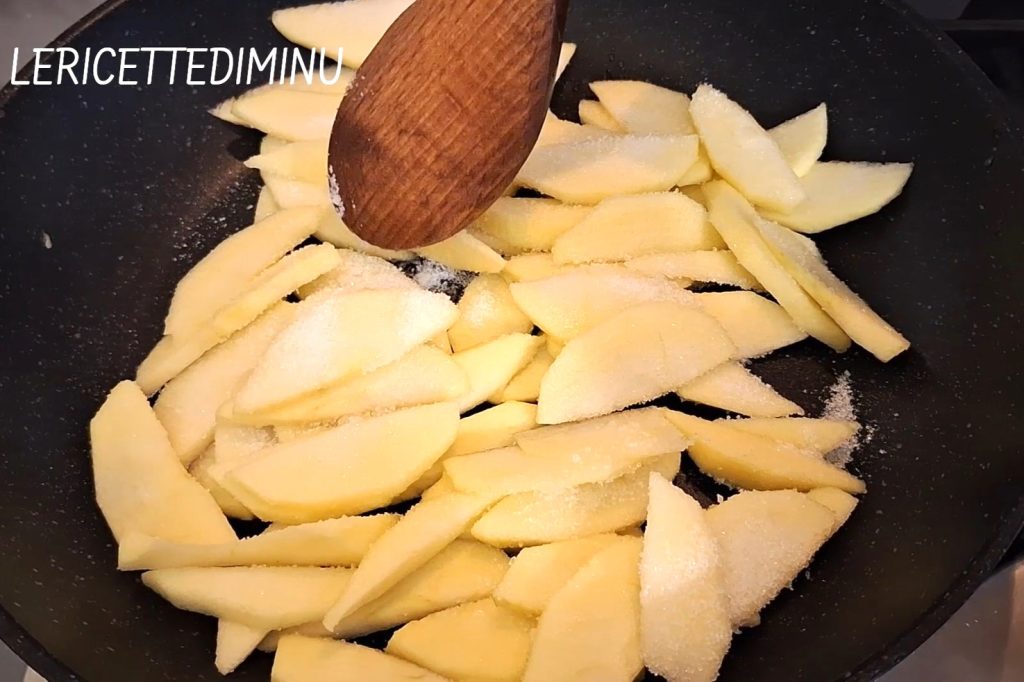 Snijd in dunne plakjes, plaats ze in een antiaanbakpan met een paar druppels citroen (het sap van ongeveer een kwart citroen) en de suiker.