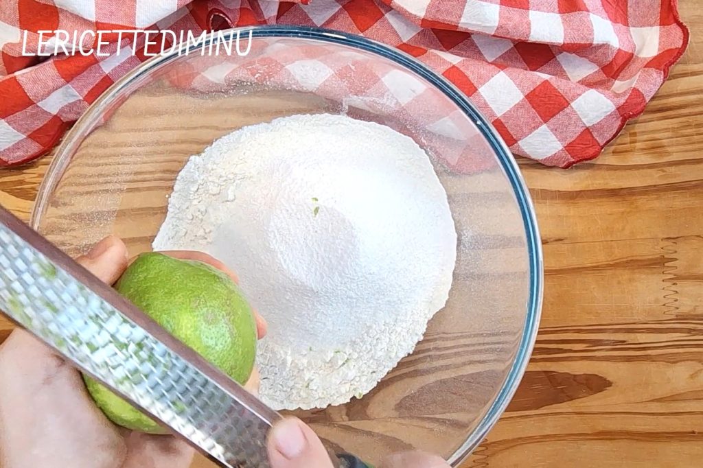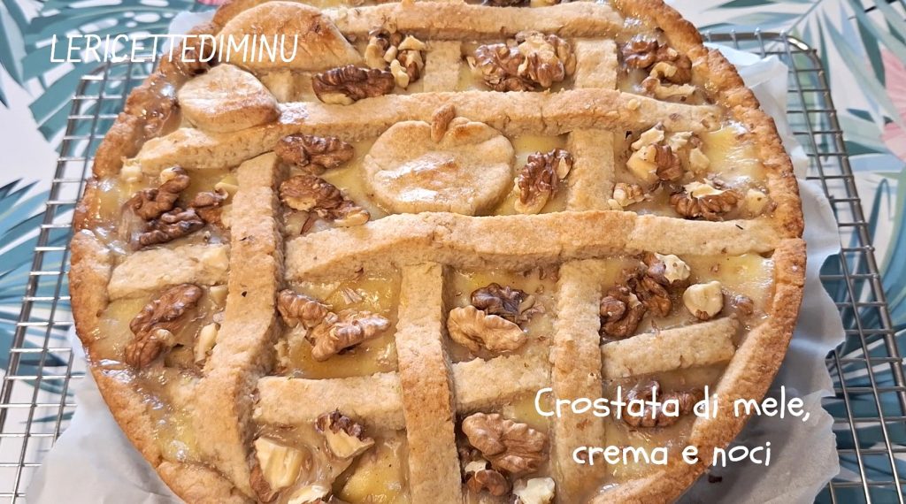 Voor het bereiden van de appeltaart met banketbakkersroom en walnoten, begin met het verzamelen van de bloem 00 (vervangbaar door bloem type 1, bijvoorbeeld Mallorca bloem), de suiker, 1 theelepel gezeefd bakpoeder, de vanilline en de geraspte schil van een onbespoten citroen,