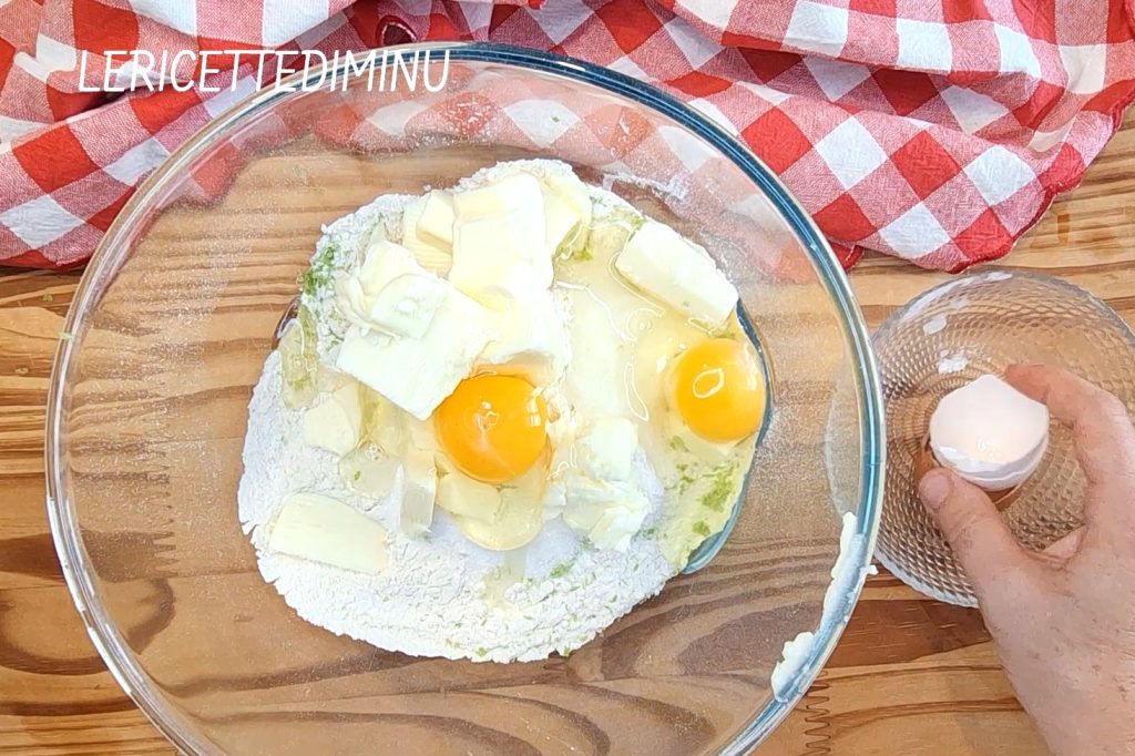 Voeg vervolgens de zachte boter in stukjes en de eieren toe en kneed. Voeg tenslotte een snufje fijn zout toe.