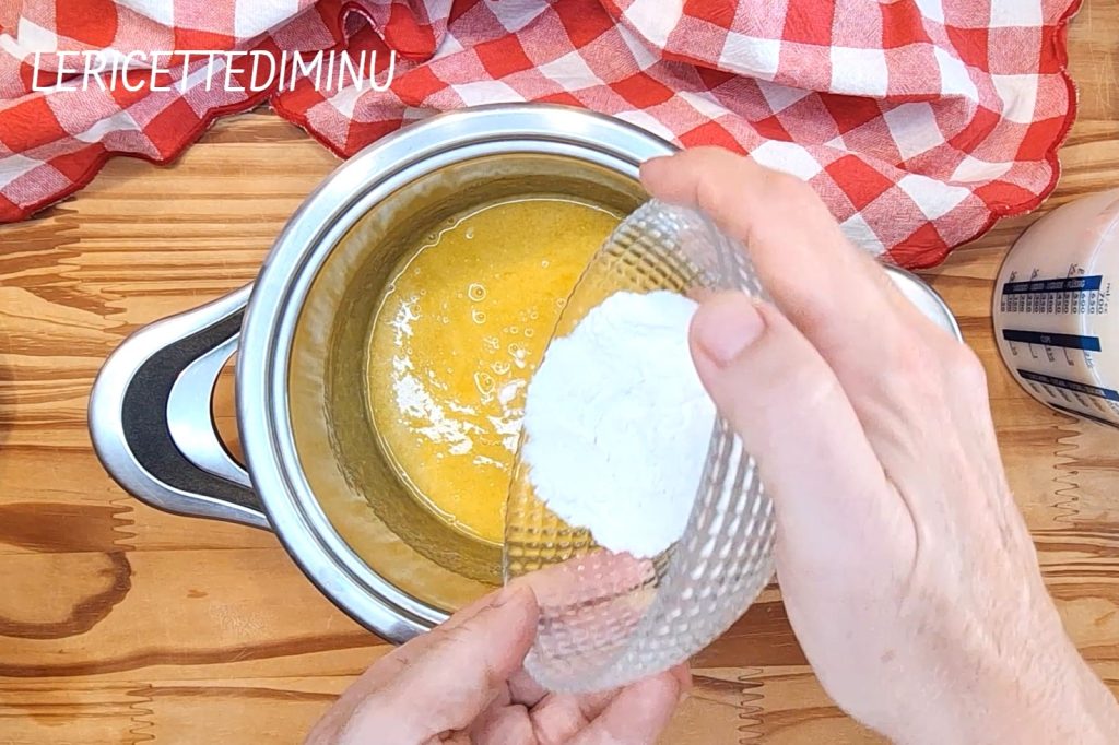Maak intussen de room door suiker, vanille en dooiers direct in de pan waarin we de room gaan indikken, te mixen.