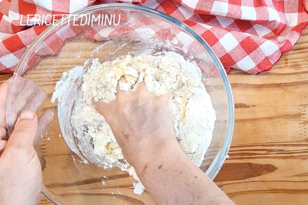 Kneed snel tot een homogeen deeg, wikkel het in plasticfolie en laat een paar uur in de koelkast rusten.