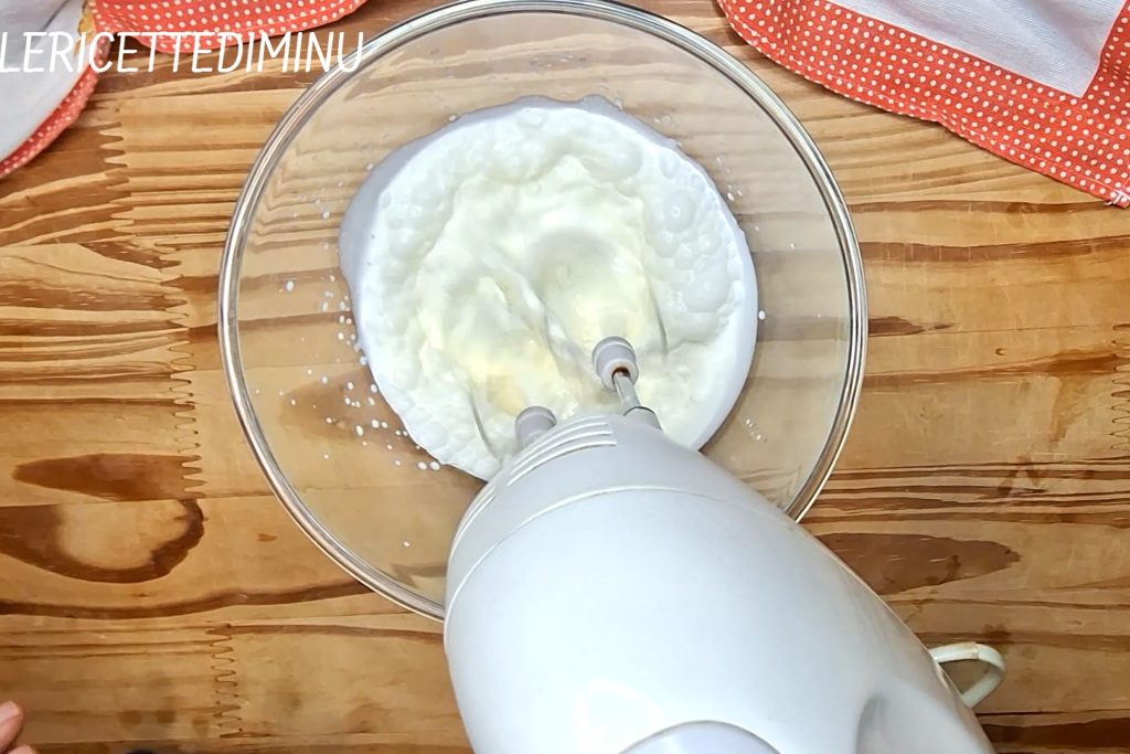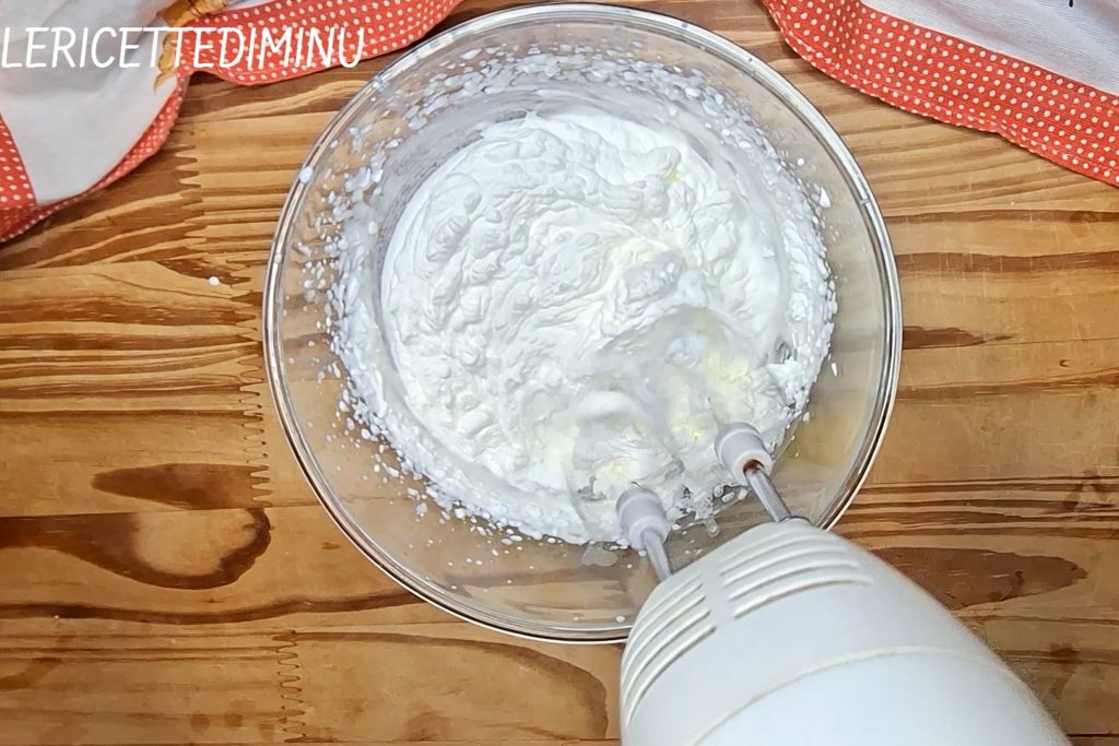 Haal de room op dit punt terug en werk het kort met de elektrische kloppers. Voeg hieraan twee of drie eetlepels slagroom toe en meng het met behulp van de kloppers.