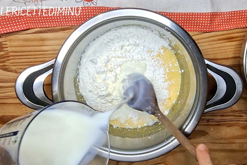 Voeg geleidelijk het zetmeel toe, afgewisseld met het toevoegen van melk terwijl het wordt opgenomen.