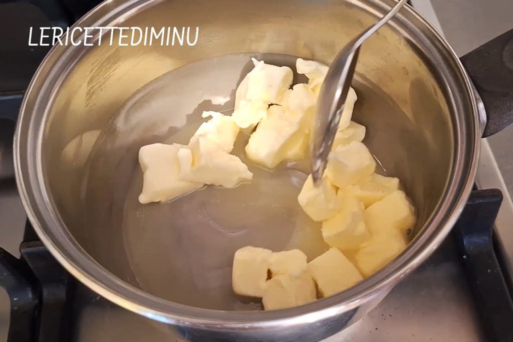 Voorbereiden van de chocolademuffins: begin met het smelten van de boter op een zeer laag vuur.