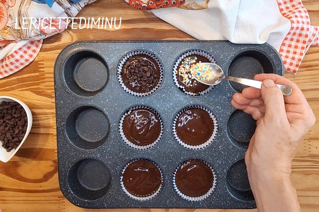 Zodra een homogeen en stevig mengsel is verkregen, schep het dan in 6 bakvormpjes die we al in de bijbehorende muffinbakvorm hebben geplaatst.