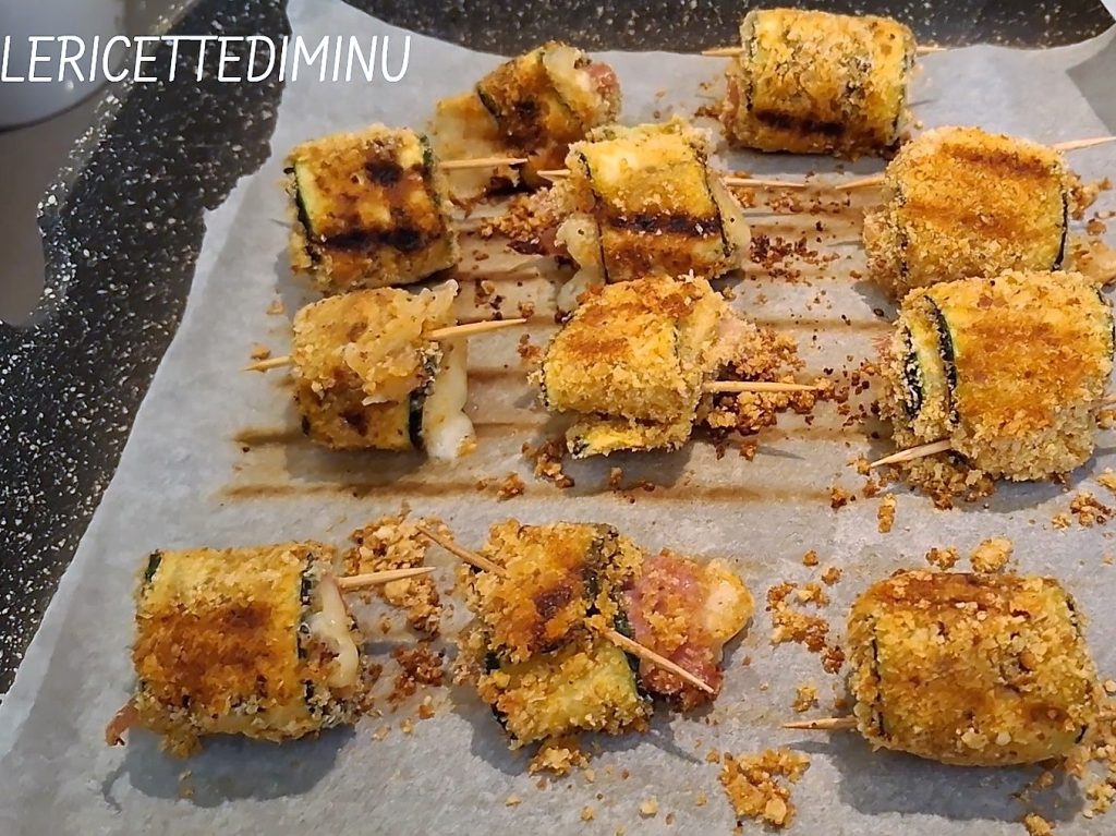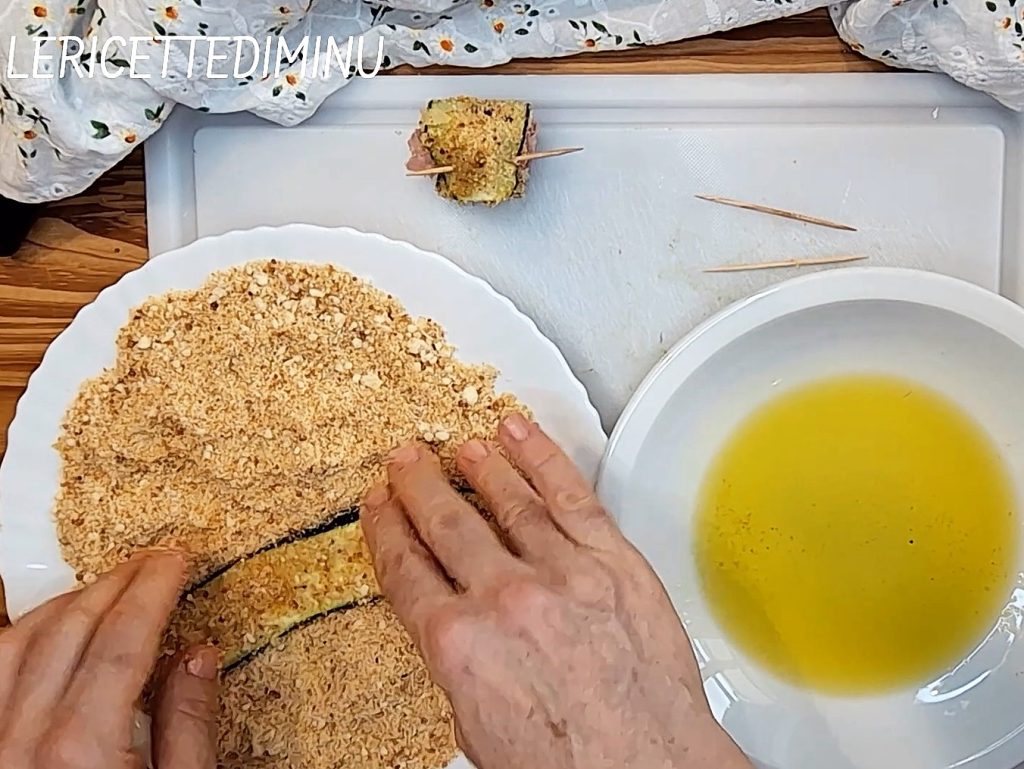 De courgetterolletjes in de pan zijn een heerlijk gerecht dat zonder frituren wordt bereid.