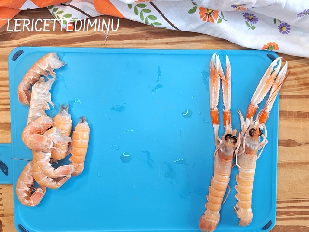 Laat een paar langoustines heel om ze als decoratie voor het gerecht te gebruiken, verwijder de koppen van alle andere en verwijder ondertussen het donkere darmkanaal.
