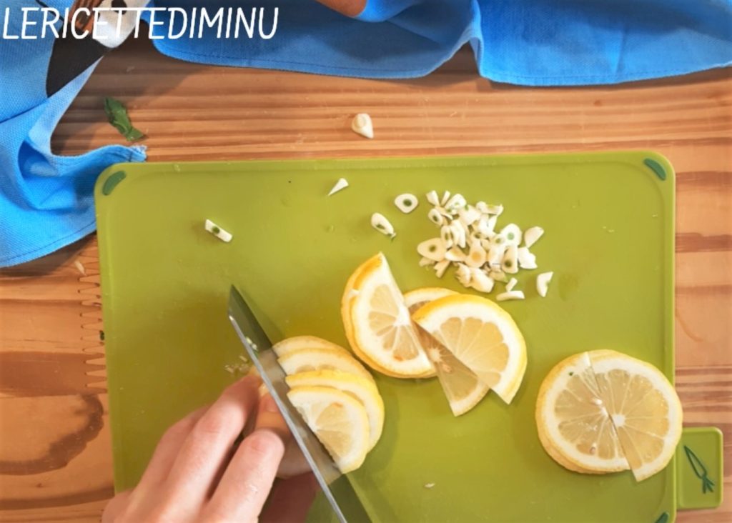 Snijd van een goed gewassen citroen dunne plakjes en verdeel deze in tweeën.