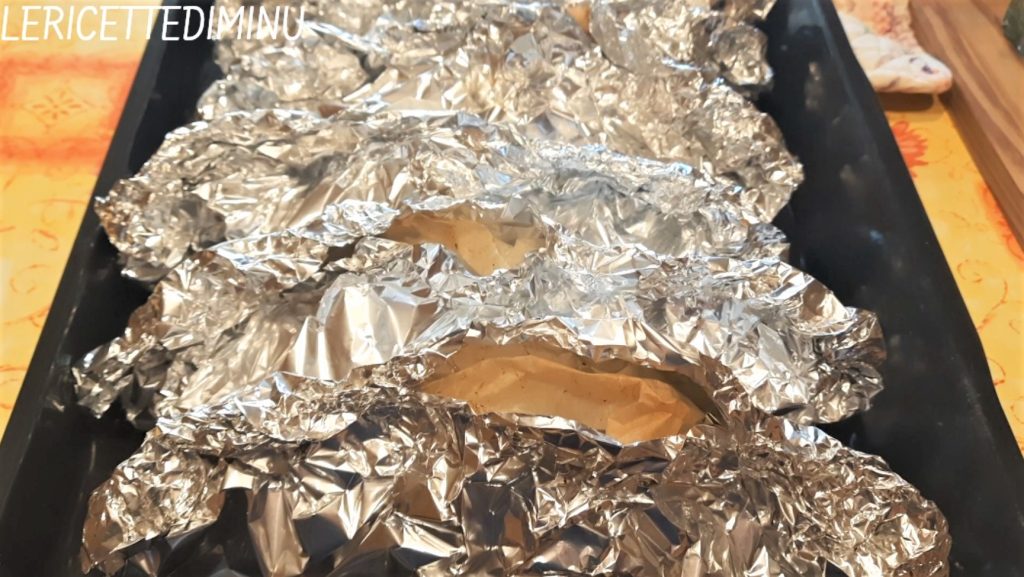 • Zet de vissen naast elkaar op de bakplaat van de oven en bak in een al voorverwarmde statische oven op 200 graden, in het midden en onderste deel, ongeveer 25 minuten.