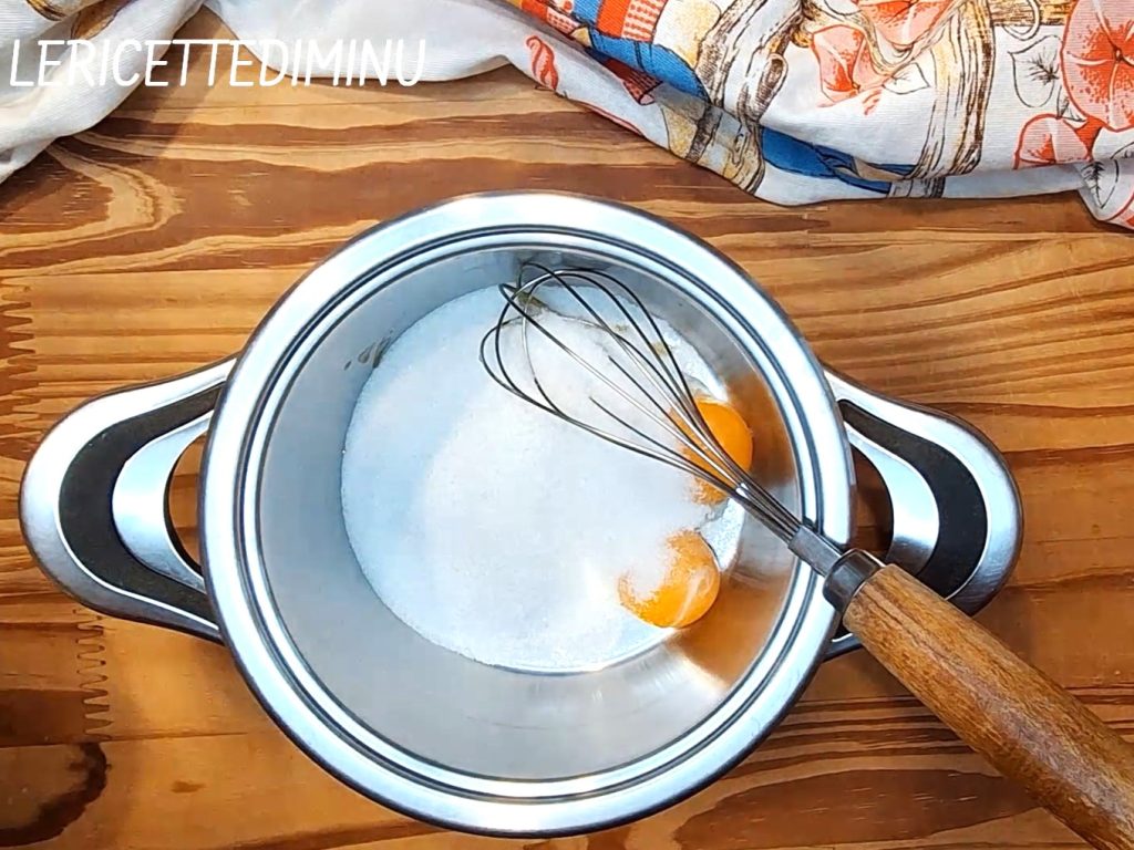 Maak apart een beslag door 6 eiwitten en 100 gram bloem 00 met een vork te kloppen.