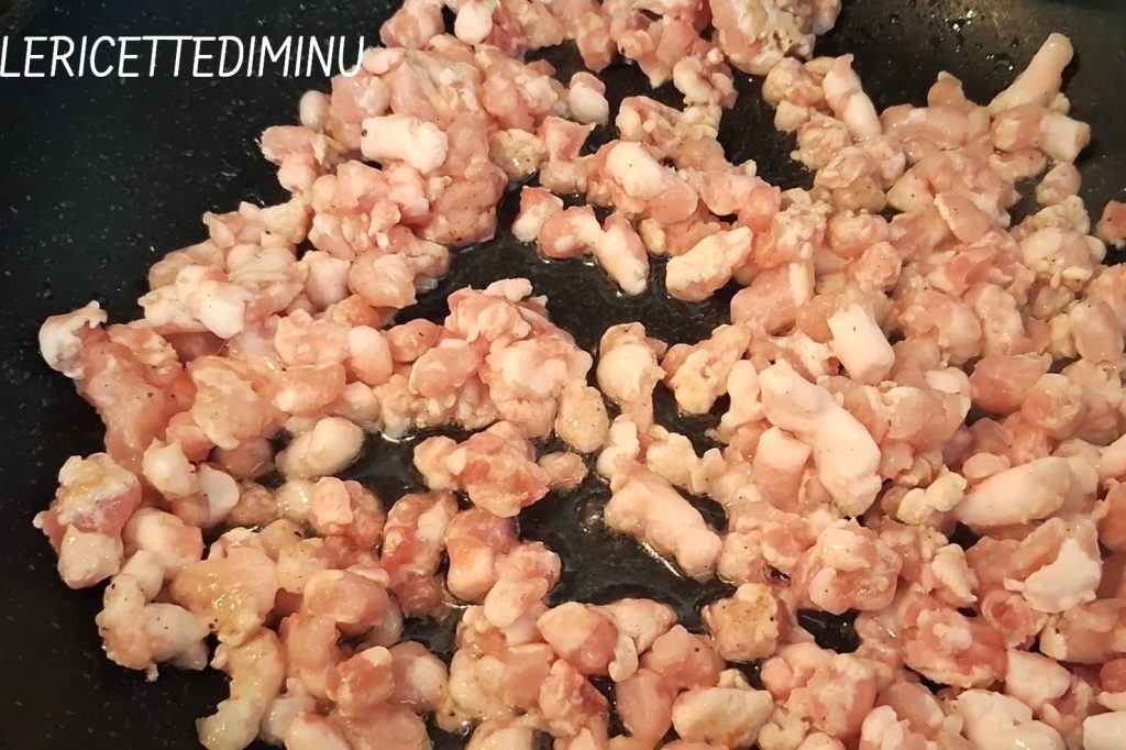 Voeg op dit punt de plakjes artisjok, de worst, de in stukjes gesneden scamorza en de geraspte Parmezaanse kaas toe.