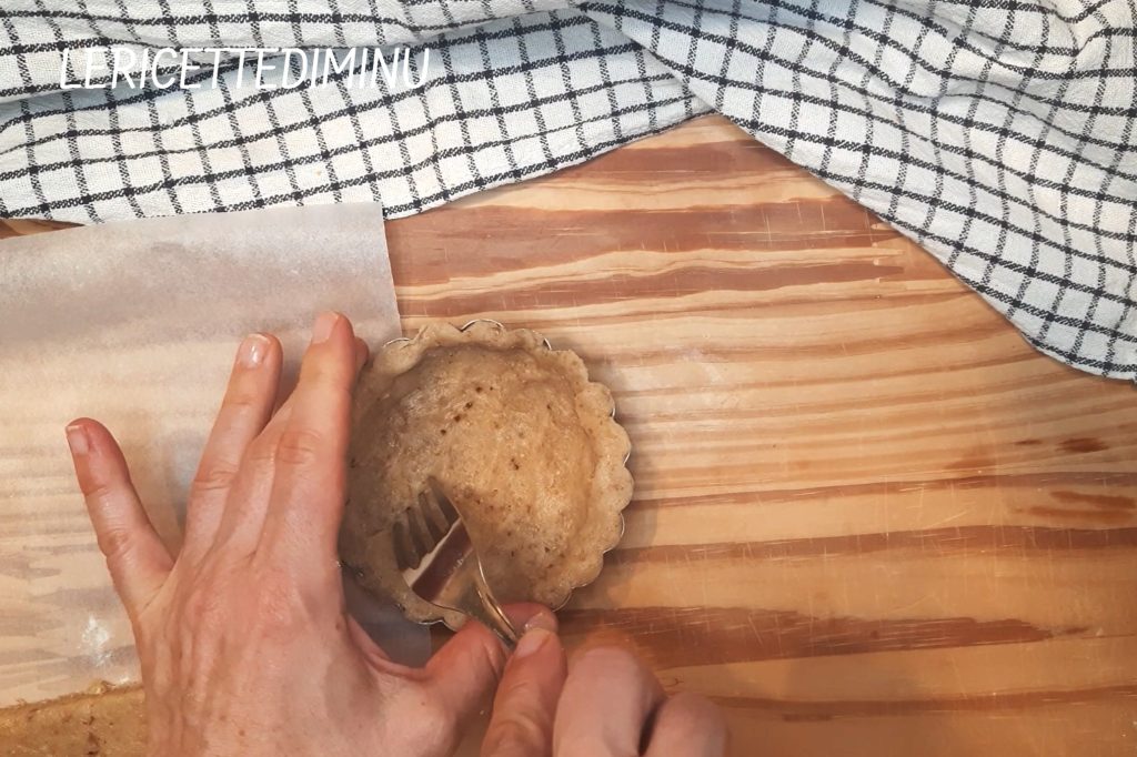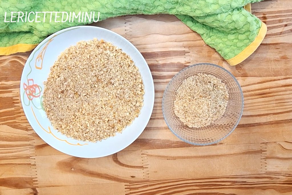 Voor het bereiden van de mini notentaartjes, maal de noten niet te fijn of hak ze met een mes.