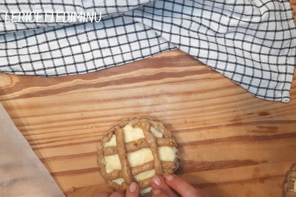 Maak deegrolletjes als stroken en laat notenstukjes rondom de mini taartjes kleven. Dit om ze een meer bijzondere uitstraling te geven en een vleugje knapperigheid toe te voegen.