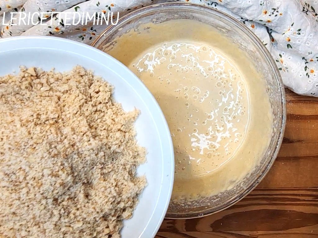 Meng alles goed. Voeg als laatste de gehakte noten toe aan het deeg en meng ze met een spatel.