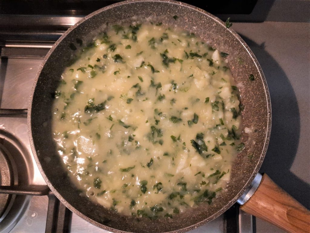 Pasta aardappelen en peterselie is een eenvoudig maar smaakvol hoofdgerecht, typisch voor de landelijke traditie.