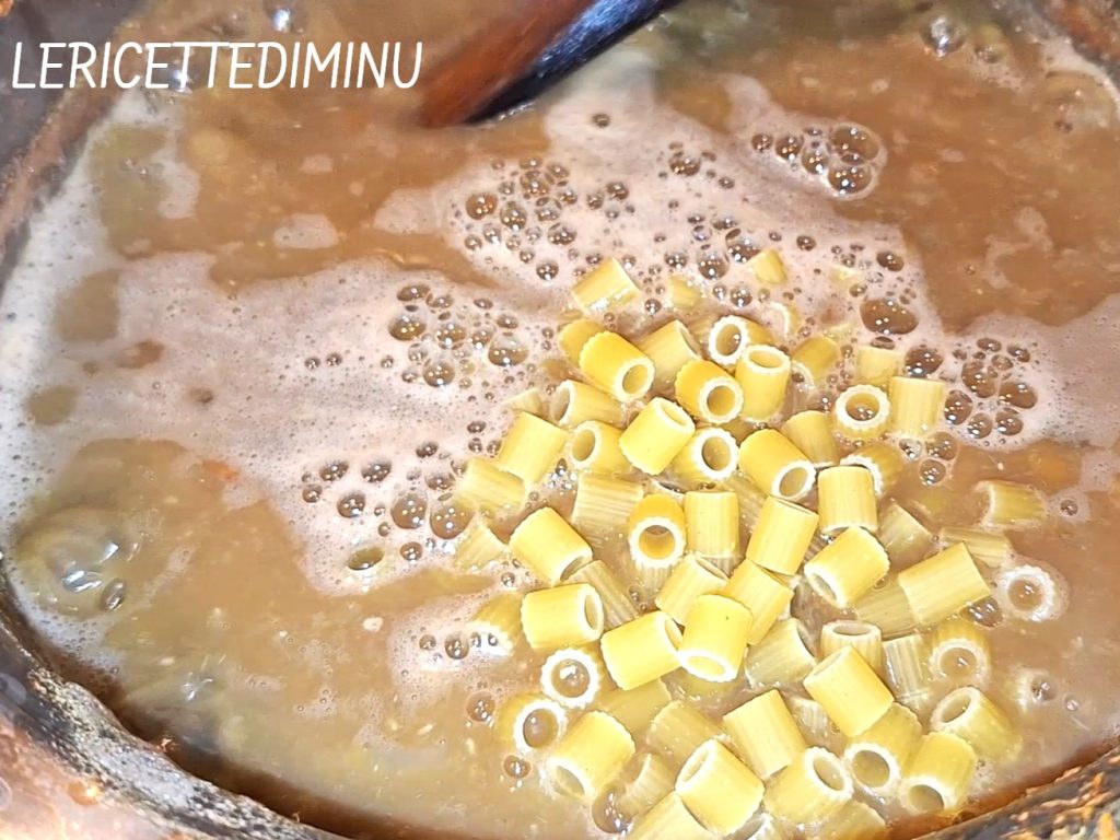 Zij passeerde de linzen niet door de passeerzeef, iets wat mijn moeder wel deed, aan wie ik altijd vroeg om er zoveel te doen dat er een mooie crème werd gemaakt waarin de pasta bijna kon zwemmen.