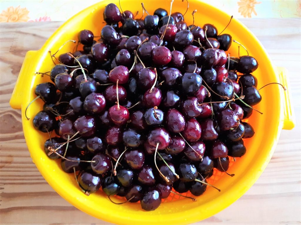 Was de kersen meerdere keren onder stromend water en laat ze uitlekken in een vergiet.