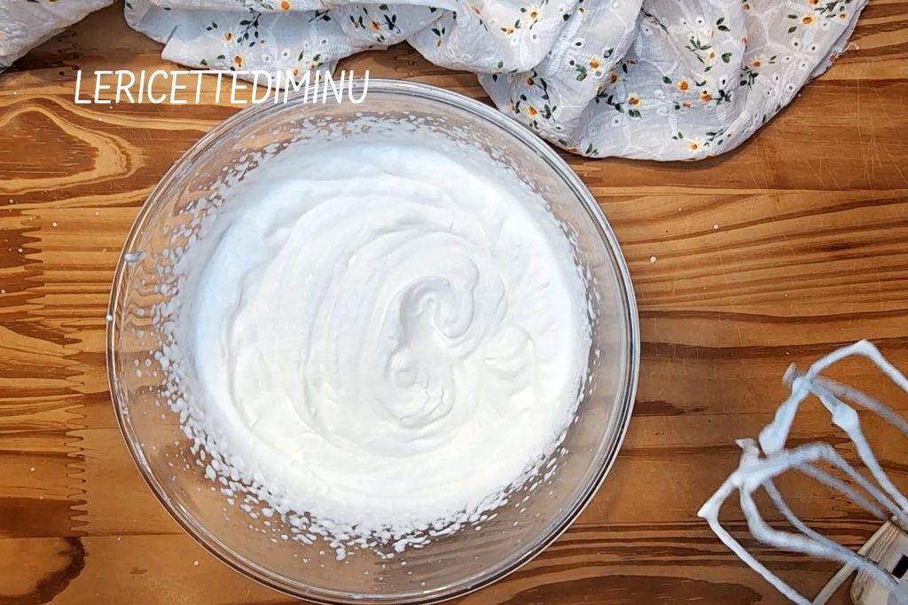 • Voeg op dit punt met een siliconen spatel de half opgeklopte room toe.