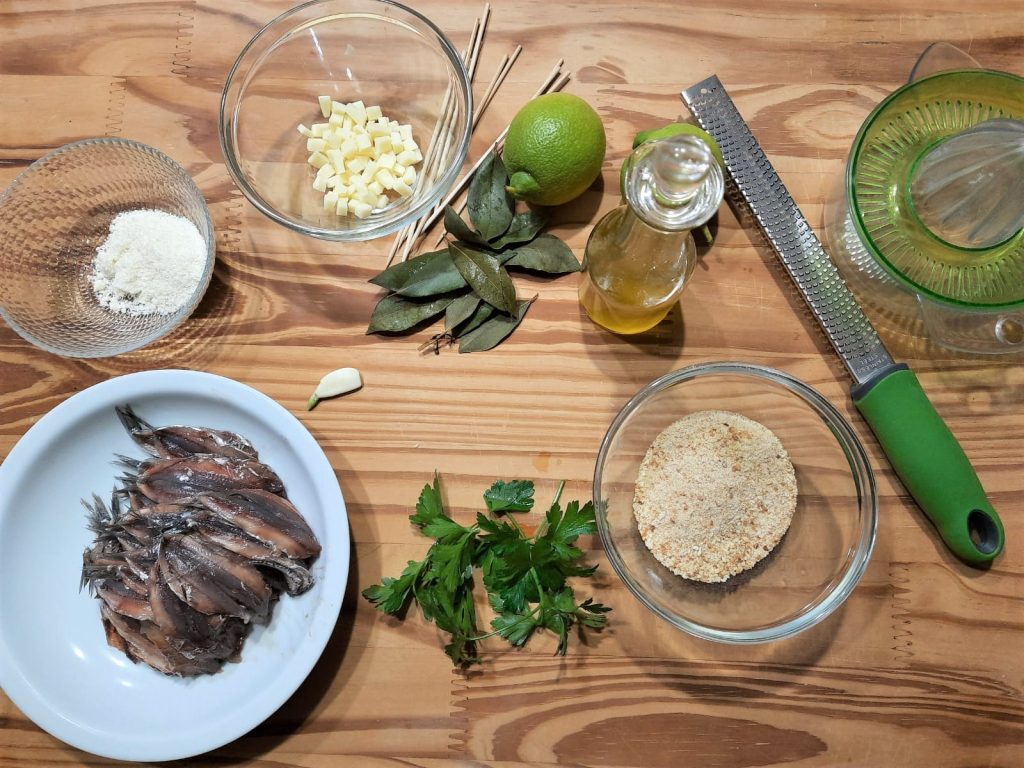 • 300 g ansjovis (vers, gefileerd en opengeklapt)