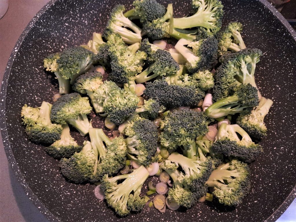 Voeg de fijngesneden lente-uitjes toe en kort daarna de reeds gewassen en uitgelekte broccoli.
