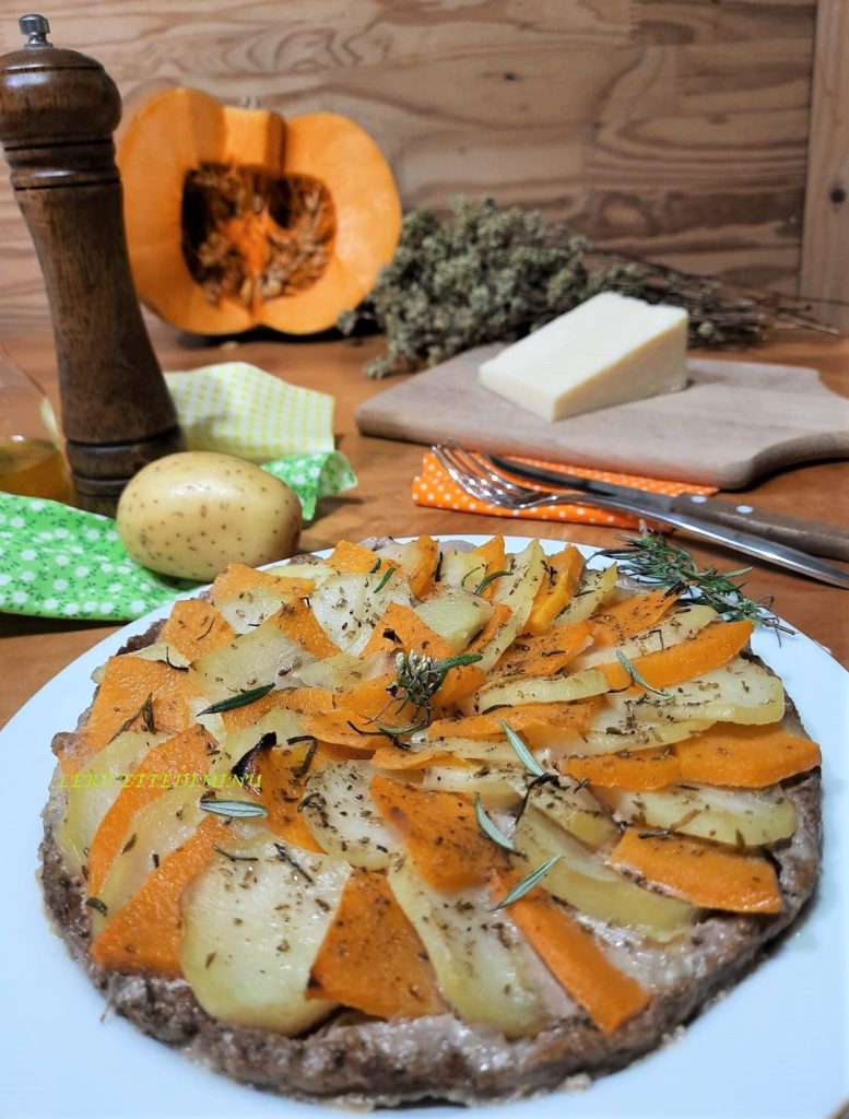 De vleestaart met pompoen en aardappelen is een lekker en eenvoudig hoofdgerecht dat ook groenten bevat.