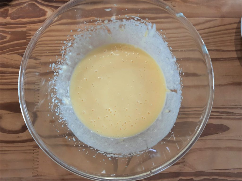 Voeg de gesmolten boter toe en werk opnieuw met de elektrische garde.