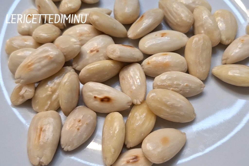 Om de geur van de amandelen te versterken, toasten we ze lichtjes in de oven, maar maken ze slechts lichtbruin.