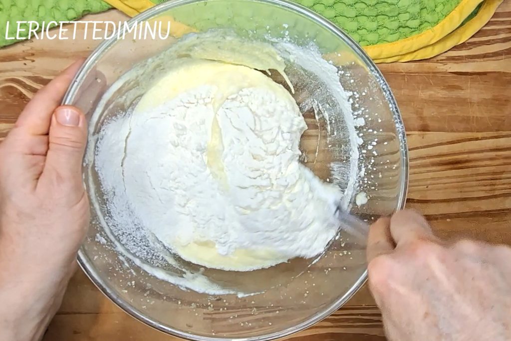 Voeg vervolgens de eiwitten toe en meng met een spatel met bewegingen van beneden naar boven.