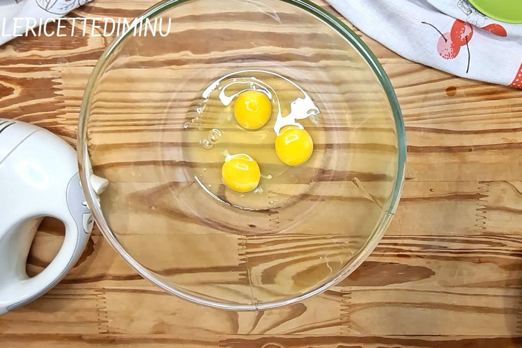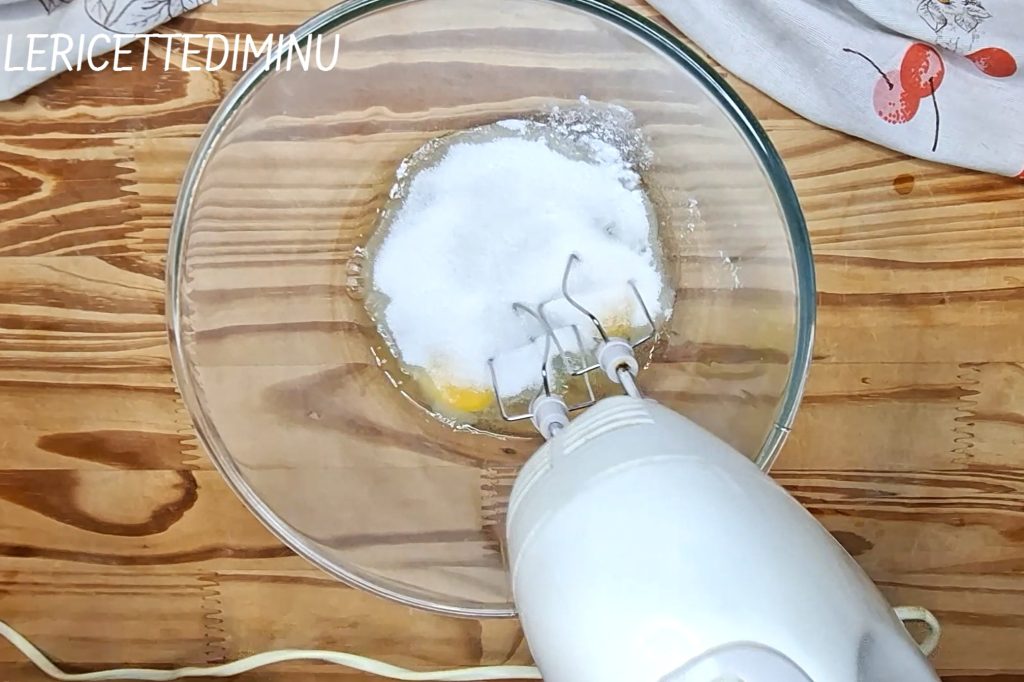 Klop met de elektrische gardes de eieren met de suiker en vanilline tot ze schuimig zijn.