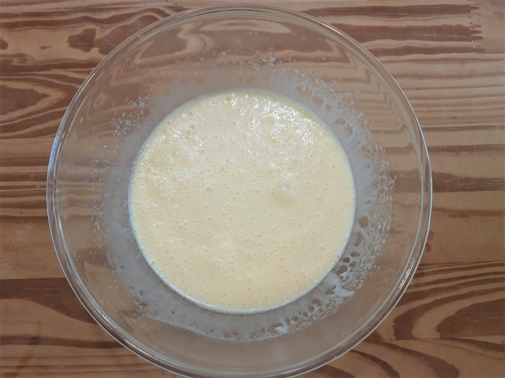 Klop in een kom met een elektrische garde de eieren samen met de suiker en vanilline, totdat je een schuimige massa krijgt.