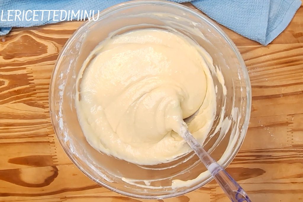 • Voeg in een van de kommen de cacao toe, die apart is verwerkt met 1 theelepel suiker en zoveel melk als nodig is om een mengsel te verkrijgen dat qua dichtheid lijkt op het andere beslag.
