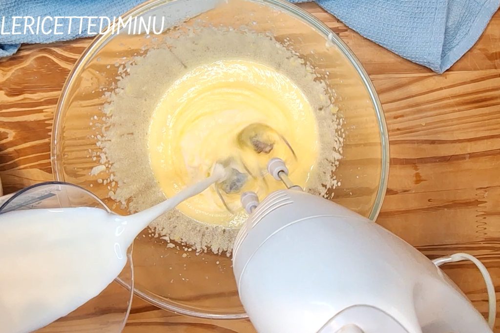 • Tenslotte, voeg de eiwitten en het meel beetje bij beetje toe.